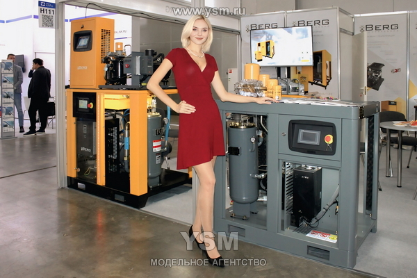 Девушка модельной внешности работала на выставке в качестве стендистки и привлекала внимание к стенду своим ярким образом.
